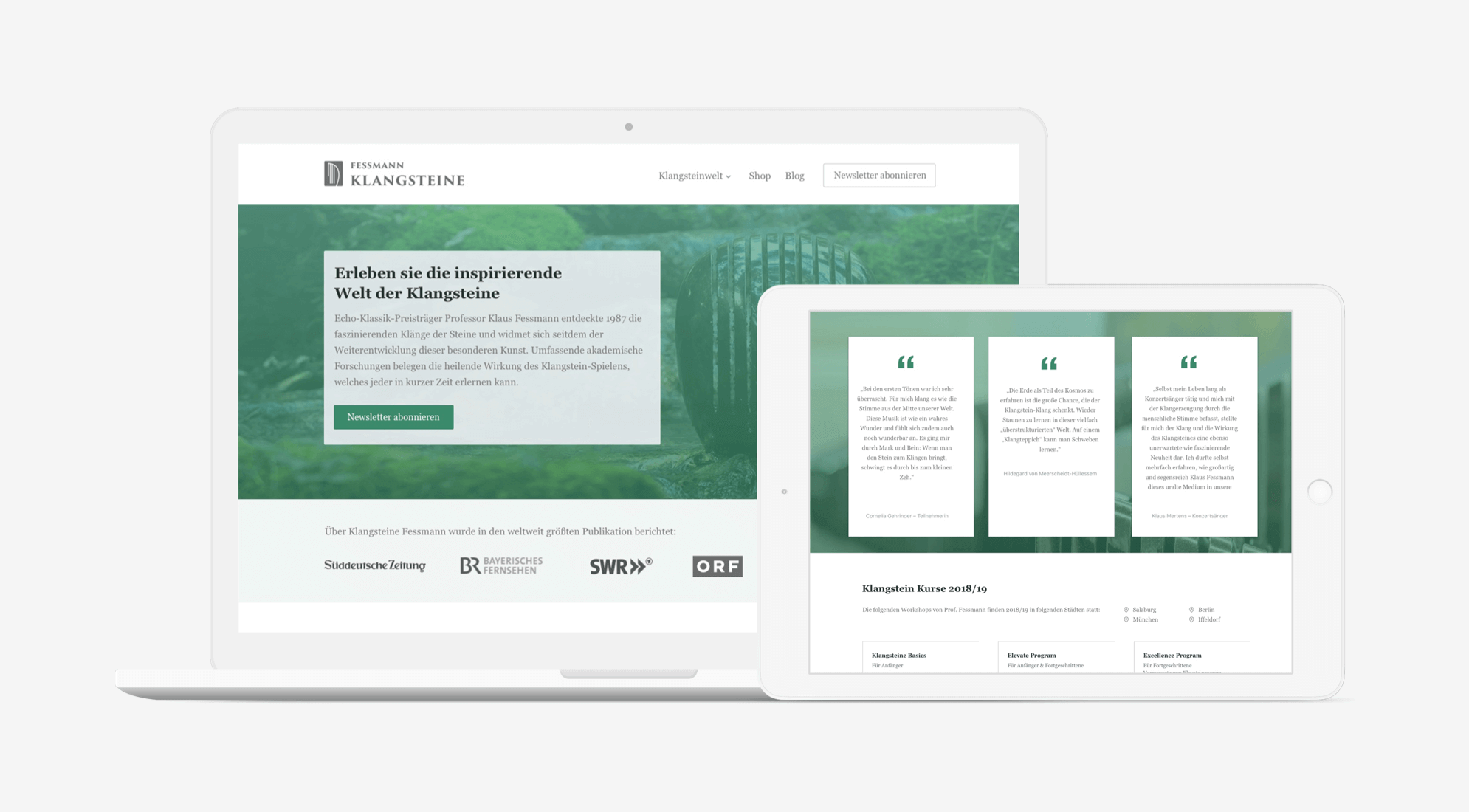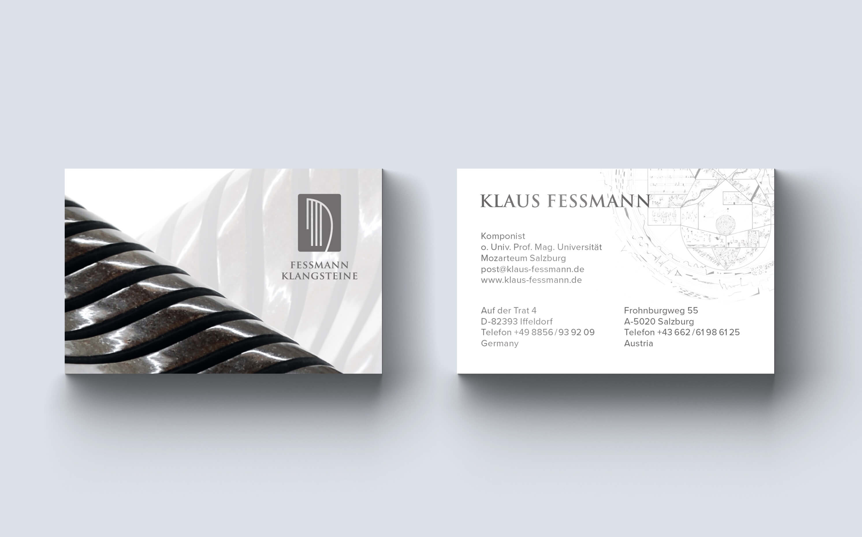 Echo-Klassik-Preisträger Prof. Klaus Fessmann ist international anerkannter Pianist, Komponist und Musikalischer Graphiker. Er ist Autor von mehreren Büchern und lehrt an der Universität Mozarteum Salzburg das Fach Komposition. Wir betreuen Prof. Fessmann sowohl in allen grafischen Angelegenheiten als auch hinsichtlich seiner Websites und Social Media Kanäle.