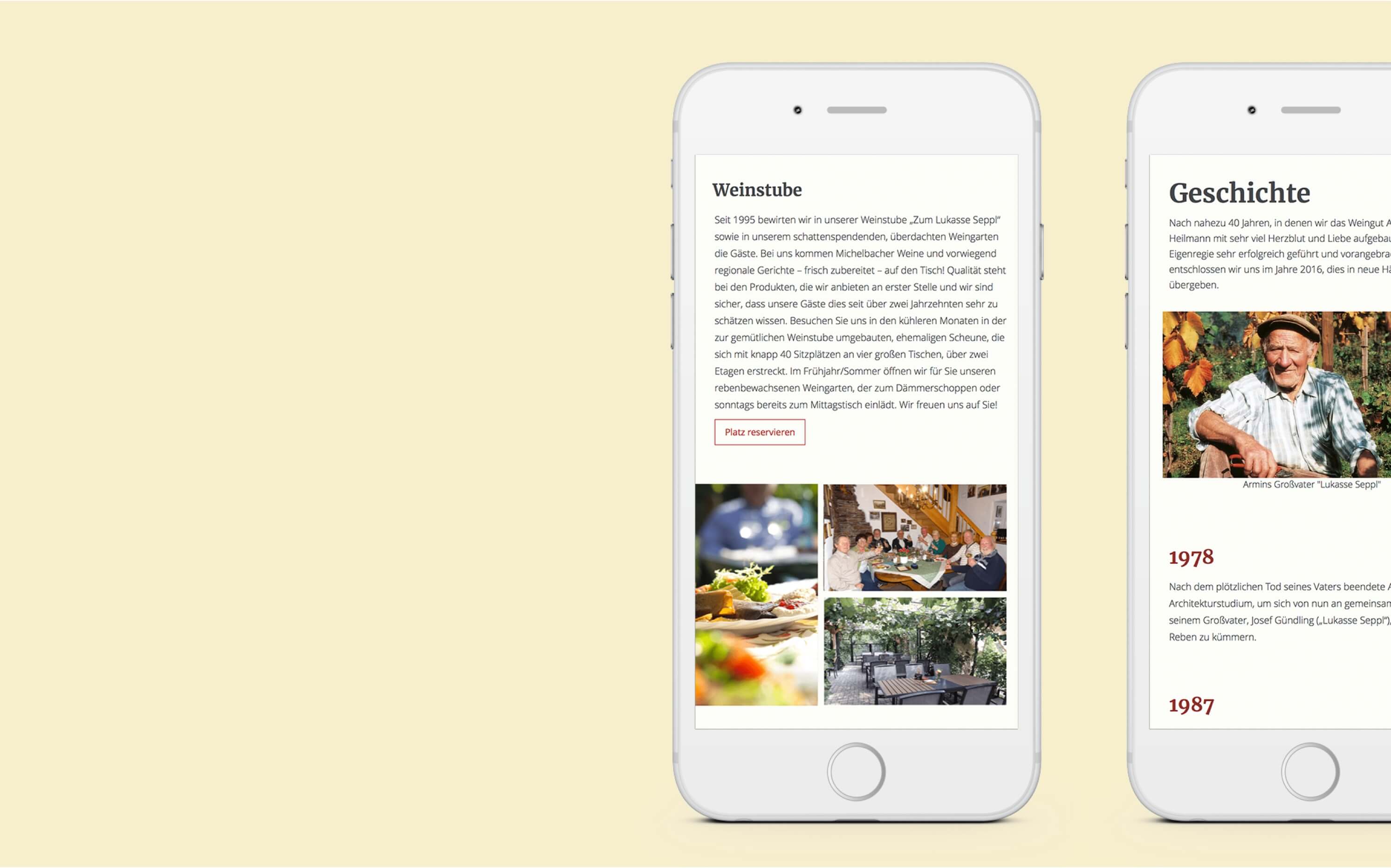 Das Weingut Heilmann war eines der erfolgreichsten Weingüter in Franken und wurde mit dem Bayerischen Staatsehrenpreis, „Best of Gold“, „Best of Riesling“ und vielen anderen Preisen ausgezeichnet. 2016 wurde es verkauft, weil eine Nachfolge innerhalb der Familie fehlte. Bis heute betreiben Armin und Maria Heilmann aber die Vinothek und Weinstube Heilmann in Michelbach. Das Corporate Design des Weingutes lag über die gesamte Dauer in unseren Händen.